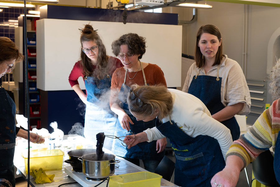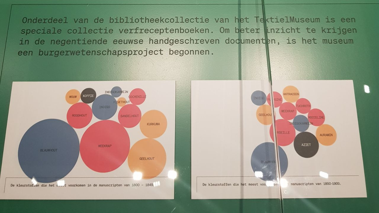 In 2022 liep ik stage in het Textielmuseum. Ik heb hier meegewerkt aan de tentoonstelling Kleurstof. Ik verzamelde informatie over de tentoonstellingsobjecten, hielp met het schrijven van teksten en droeg bij aan de organisatie van een citizen science project. In dit project bestudeerde burgers, wetenschappers en kunstenaars samen oude verfrecepten uit het archief van het museum. Ik organiseerde een workshop voor een recept voor blauw verfen. Ik schreef hierover ook de volgende blogpost op de website van het Textielmuseum.